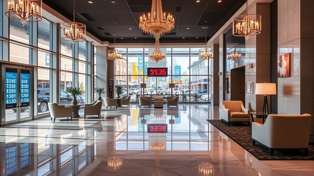 While amenities play an essential role in determining hotel costs in Branson, Missouri, their impact varies significantly across different star ratings. For instance, 5-star hotels average $267 per night, reflecting premium amenities and services. In contrast, 2-star hotels, with average rates around $78, focus on essential comfort, showcasing a different pricing strategy. Importantly, amenities like kitchens and fitness centers can drive prices higher; kitchen-equipped hotels average $164 per night. As you consider your options, be aware of amenity trends influencing costs. A 3-star hotel, averaging $203, offers a balance—providing quality without the steep premium. Ultimately, understanding these dynamics helps you make informed choices that align with your budget and preferences.