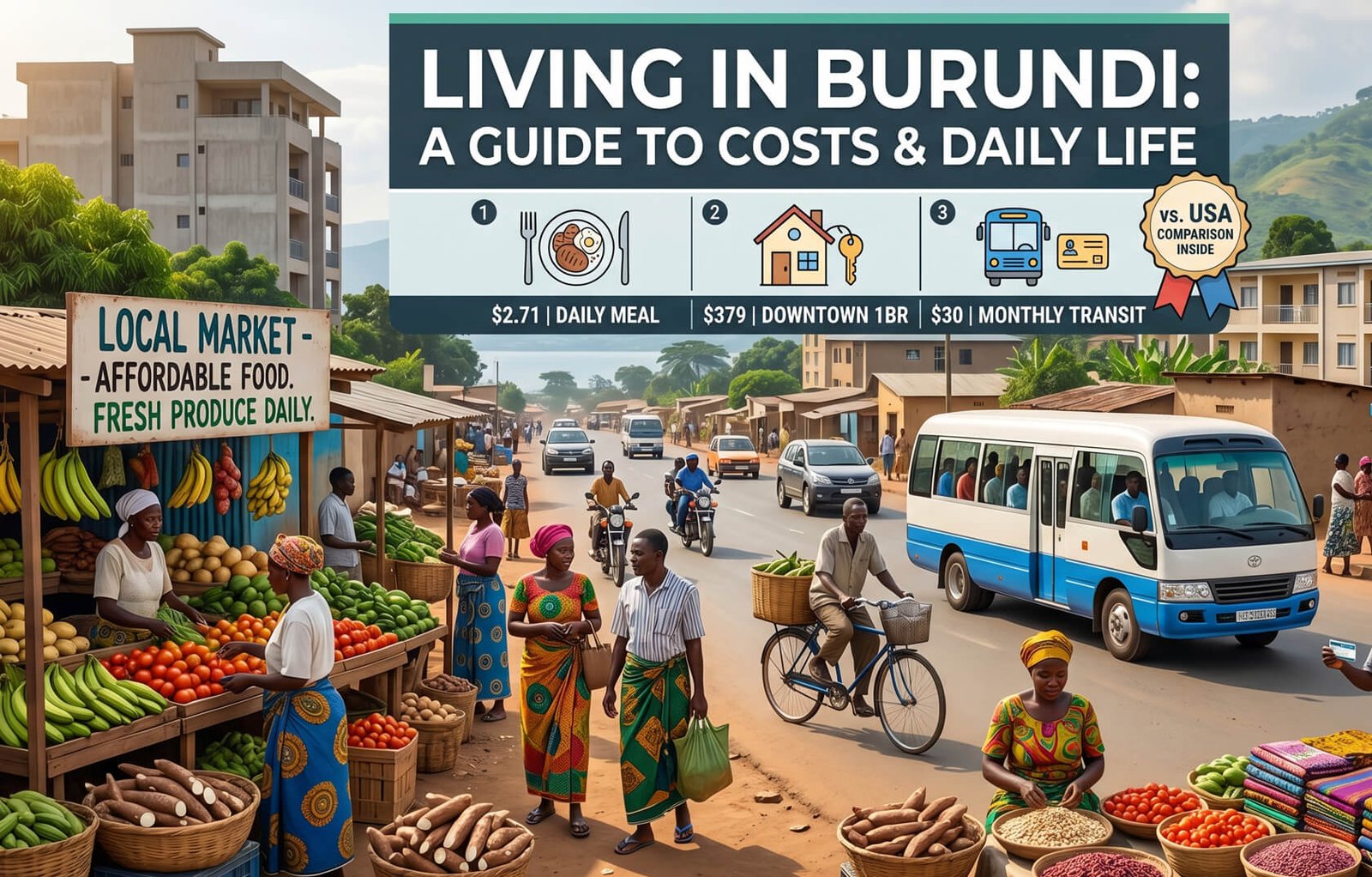 Practical breakdown of living costs in Burundi — from $738 monthly averages to rent, food, and bills — discover where...