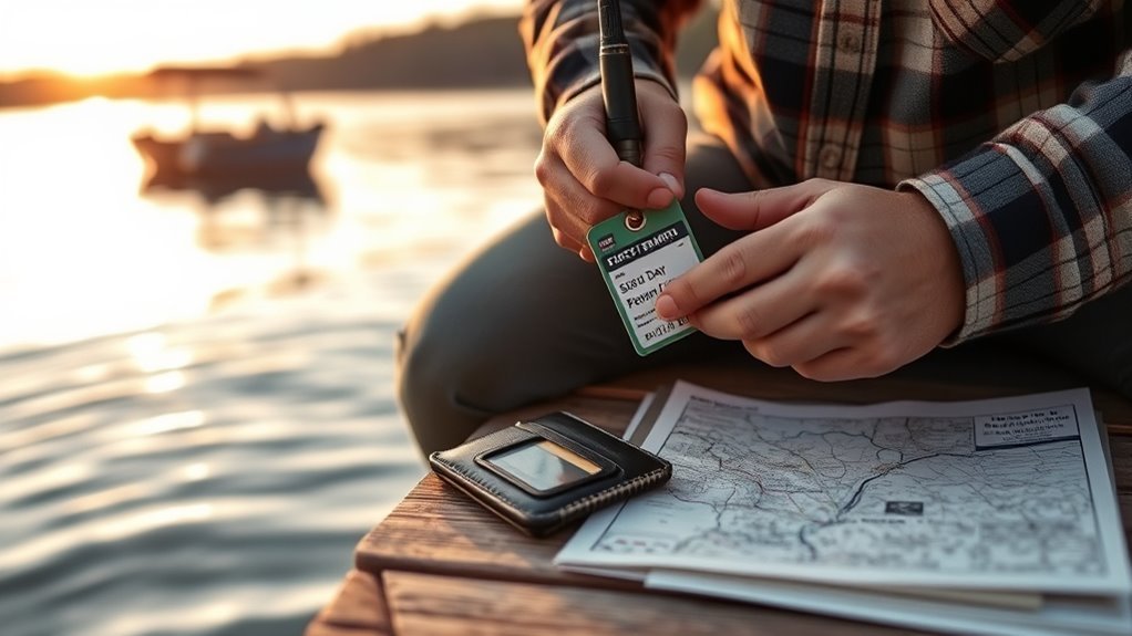 Keep records of the purchase confirmation or receipt while fishing, and verify that the license period and personal details are accurate before you leave. This guarantees you’re meeting regulatory requirements on the water.