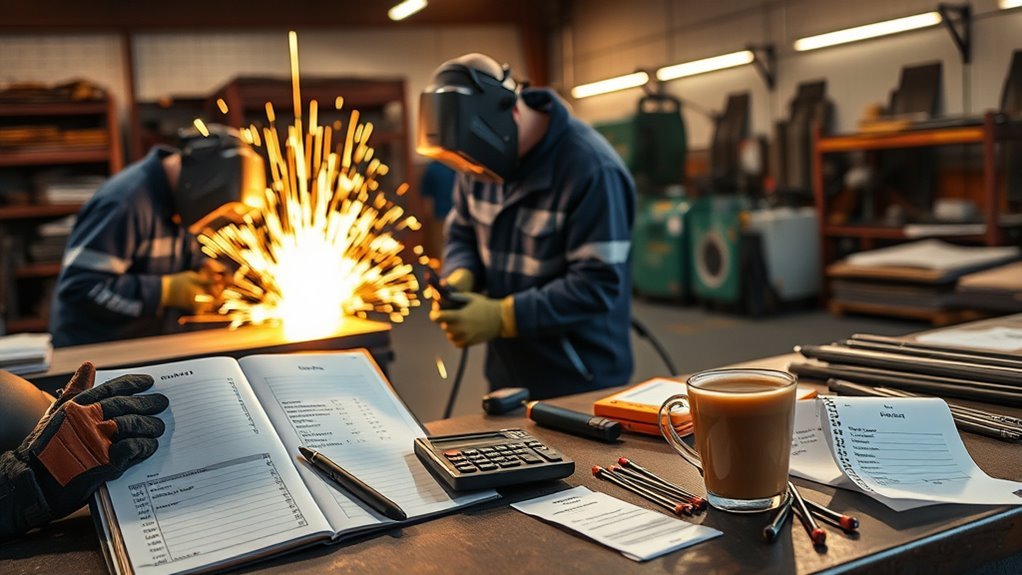 After accounting for rods, wire, gas, and scrap, don’t forget that your personal tools and upkeep add another layer of expense—expect to spend roughly $100–$500 on safety gear and supplies, $500–$2,000 if you need a basic welding machine, and an additional $1,100–$2,500 for an extensive tool kit; books and course materials can tack on $100–$500 more.