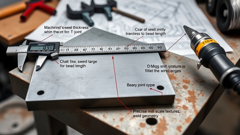 Use consistent weld measurement techniques: tape, calipers, or CAD takeoffs, noting start/stop points and any intermittent welds. Classify each joint (butt, lap, corner) and list weld size (0.125–1.250 in) to calculate filler volume and welding time per foot.